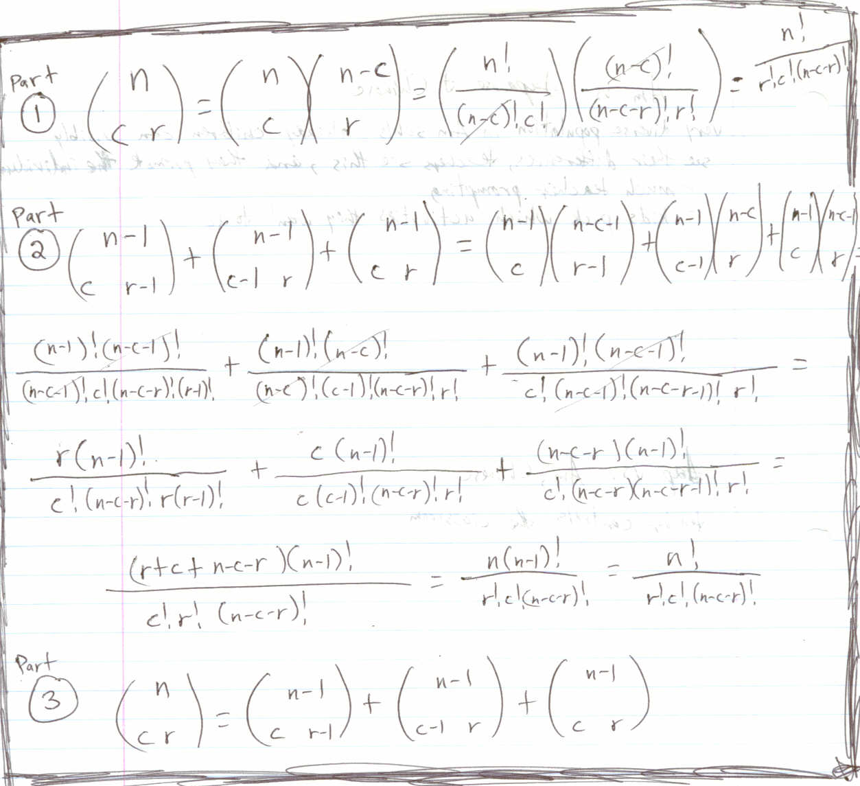 (n)Choose(r)Choose(c)=(n-1)Choose(r-1)Choose(c)+(n-1)Choose(r)Choose(c-1)+(n-1)Choose(r)Choose(c).