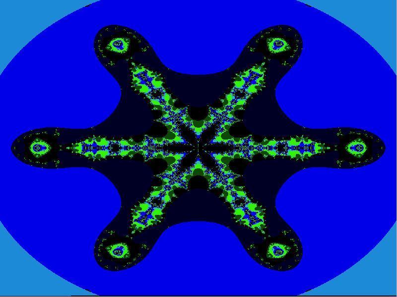 Now that the test has been described, all that remains to be done is to perform the test on every point on the viewing window. Simple modifications of the test and also the method of assigning colors can create the spectacular images that adorn this page. Trigonometry and other mathematical goodies can be used within the math function to modify the shape of the fractal. These same tools can be used to make the colorations more spectacular by simply putting them into the assigning of red, green and blue values for each pixel. All this together creates a shape with self-repeating symnetry all along its surface. Also, a computer can create this with only a page or so of code and thankfully it can do so, as doing this all by hand is basically impossible. However the combination of math and counting needed, plays to the strengths of a computer system and the end result is one of the most complex shapes in the realm of mathematics.