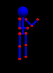 I then positioned the legs, which were slightly more difficult because the angles were not as nice and they required rotations about multiple axes at times. I followed the same steps as repositioning the arms, building off of the frame for the hips, first repositioning the upper leg and then the lower leg with respect to the upper leg. After this step, I had the complete starting position set.