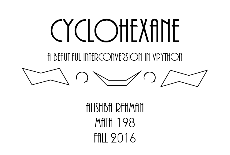 Assigned to VPython and debating between working with sound waves or some sort of chemical structure. Picked cyclohexane and chair interconversion because we are learning about it in organic chemistry and it interests me. |