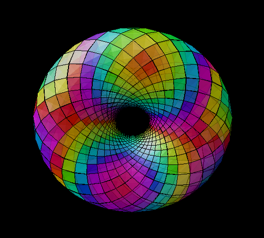 The purpose of Cliffhopf is to model the stereographic projection of the Clifford Torus doing a 4th dimensional rotation, as in Tom Banchoff's movie on the Hypertorus, of which parts may be viewed here. After first being modelled with DPGraph, this Clifford Torus is modeled using the PyOpenGL library. |