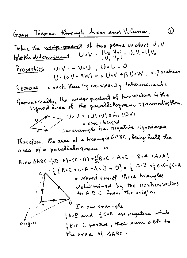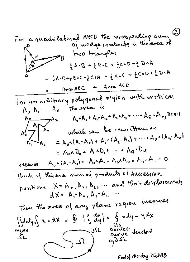 Here are page 1 , page 2 , page 3 , on the lecture on areas Monday, 1feb98.
